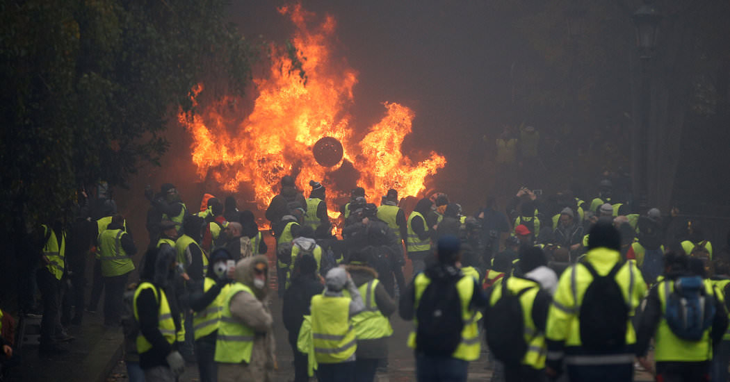仏政府が発表した燃料税増税に対する全国的な抗議行動を受けて、エドゥアール・フィリップ仏首相は4日、来年1月1日から予定されていた増税の実施を6カ月延期すると発表した。3週間前から続く抗議行動によって、仏各地の主要都市で損害や破壊が続いている。フランスでは、全車両が視認性の高い蛍光黄色の服を搭載するよう法律で義務付けられている。この黄色のベストを着た人たちが道路で抗議をしているため、抗議行動は「ジレ・ジョーヌ」(フランス語でイエロー・ベスト、黄色いチョッキの意味)と呼ばれる。エマニュエル・マクロン仏大統領は昨年5月、抜本的な経済改革を実行するとの大規模公約を掲げて大統領選に勝利した。しかしここ数カ月、マクロン氏は「富裕層のための大統領」だとの批判が高まり、支持率は急速に低下している。(BBC)