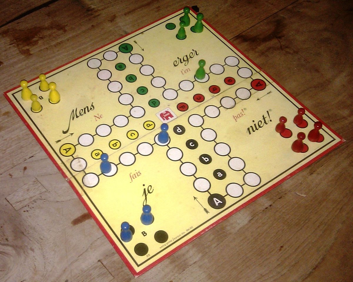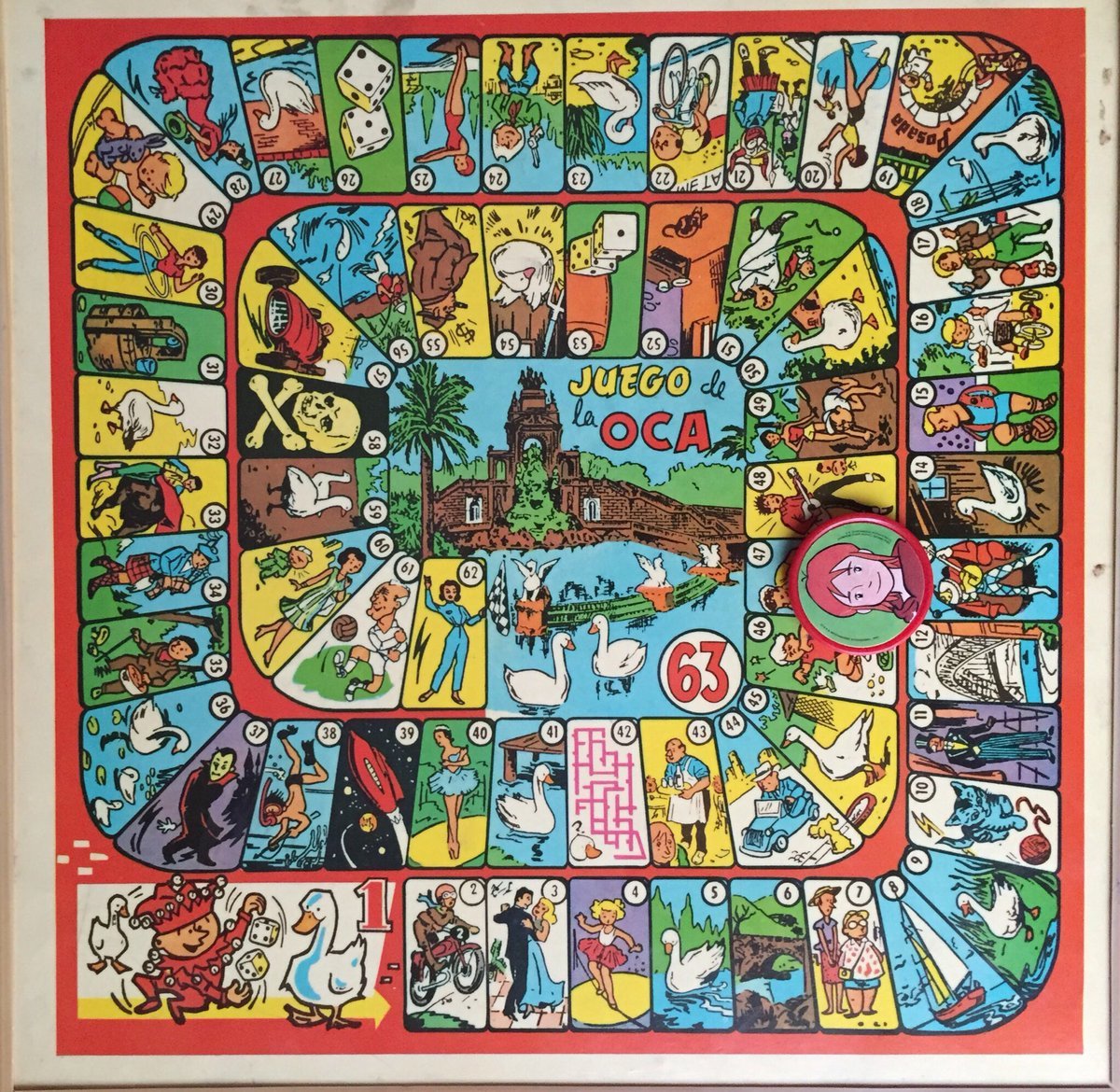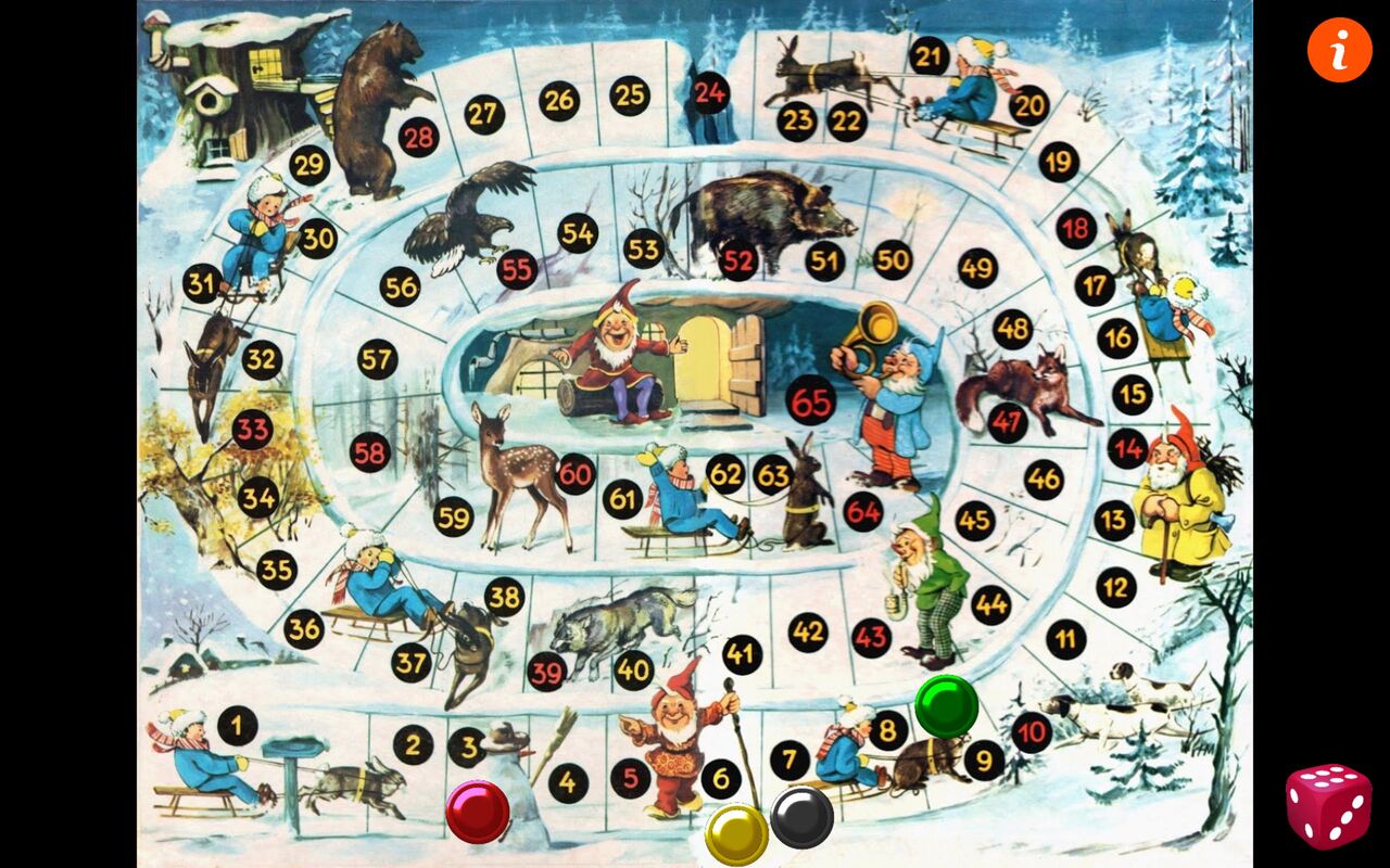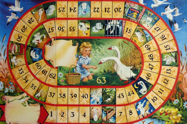 盤面は、連続した数字(通常は63)が付けられたマスで構成され、スタート地点が一番外側になるように普通はらせん状に描かれている。各々のプレイヤーの駒は、1つか2つのサイコロを投げた目の数によって動く。