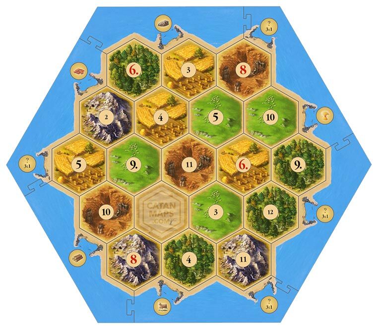 最初に六角形のタイルを並べて作るカタン島が舞台となる。各タイル(土地)には2〜12(7を除く)の数字が割り振られる。プレイヤーが手番で振るサイコロ2つの合計と同じ数字の土地から、土地に対応した資源(木材、粘土、麦、鉄、羊毛)が産出する。各プレイヤーは産出した資源を使い、道(道路)、家(開拓地)、街(都市)を建設していく(それぞれの建造物は版によって呼称は異なるが機能は同じ)。開拓の度合いが点数化され、自分の手番時に最初に10点に到達した人が勝利となる。