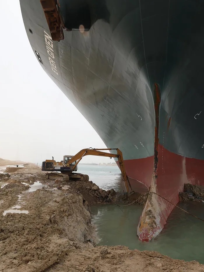 スエズ運河の座礁船を掘り出す重機 孤軍奮闘すぎると世界中で話題に