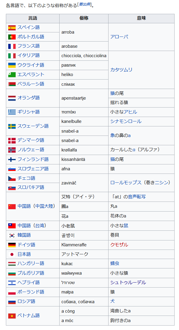 君達の言語では「@」は何て呼ばれてるの?