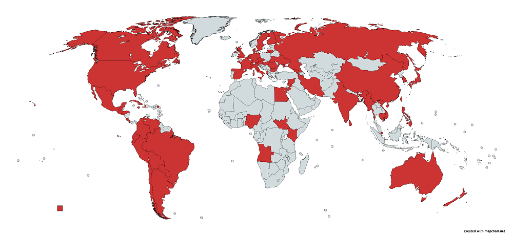 スレッド「お前らがリアルで出会ったことのある人の出身国を地図にしてみよう」より。
