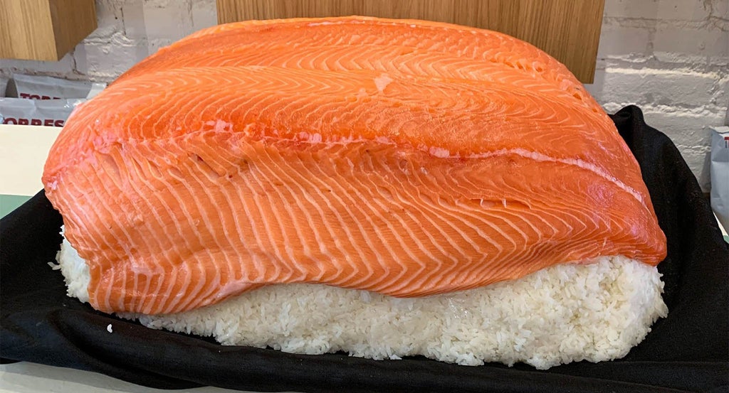 外国人「見よ!これが世界最大のサーモンの握り寿司だ!」