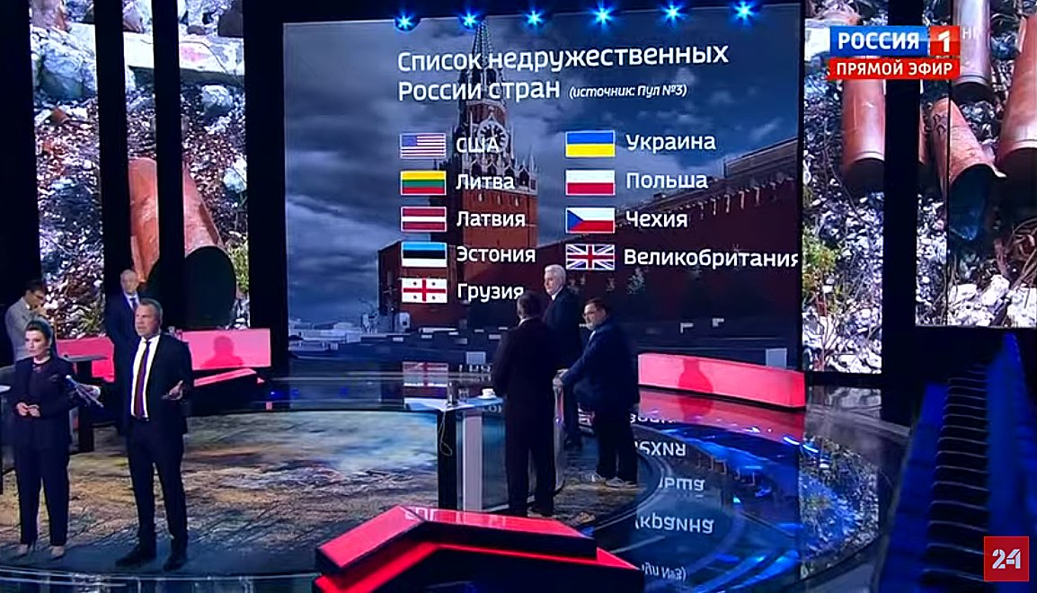 ロシア国営放送による、ロシアの「非友好的国家」のリスト