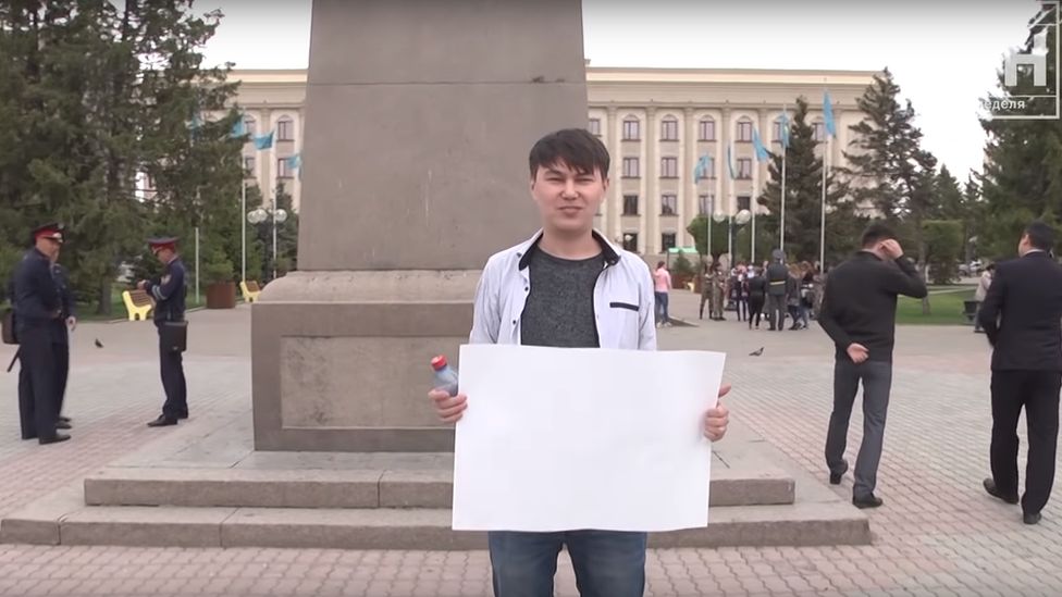 道路で何も書かれていない紙を持っていても問題ないかを活動家のAslan Sagutdinovが試したところ、カザフスタン警察は彼を拘留しました。