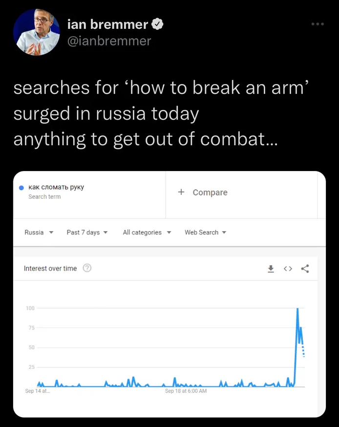 「今日のロシアでは『腕を折る方法』の検索が急上昇。戦争に行かないためになりふり構ってない・・・」