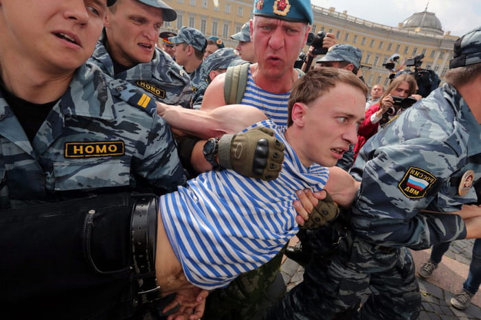 抗議活動してるロシア人は窓や階段には近寄らない方が良い