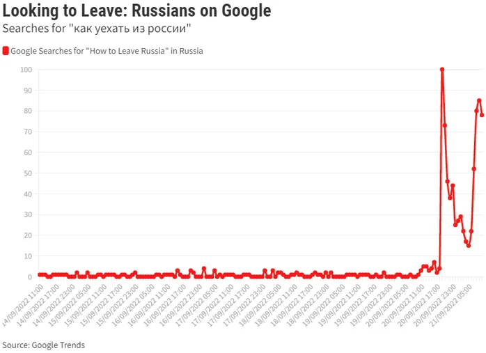 ロシアにおける「ロシアから出ていく方法」のグーグル検索。