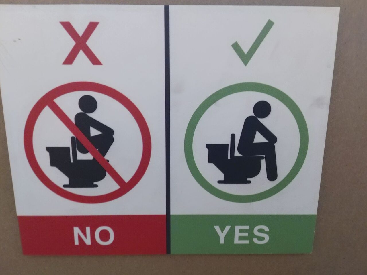 地元のトイレでこういうのを見たことがあるから、便座の上でスクアットする観光客がいるんだろうな