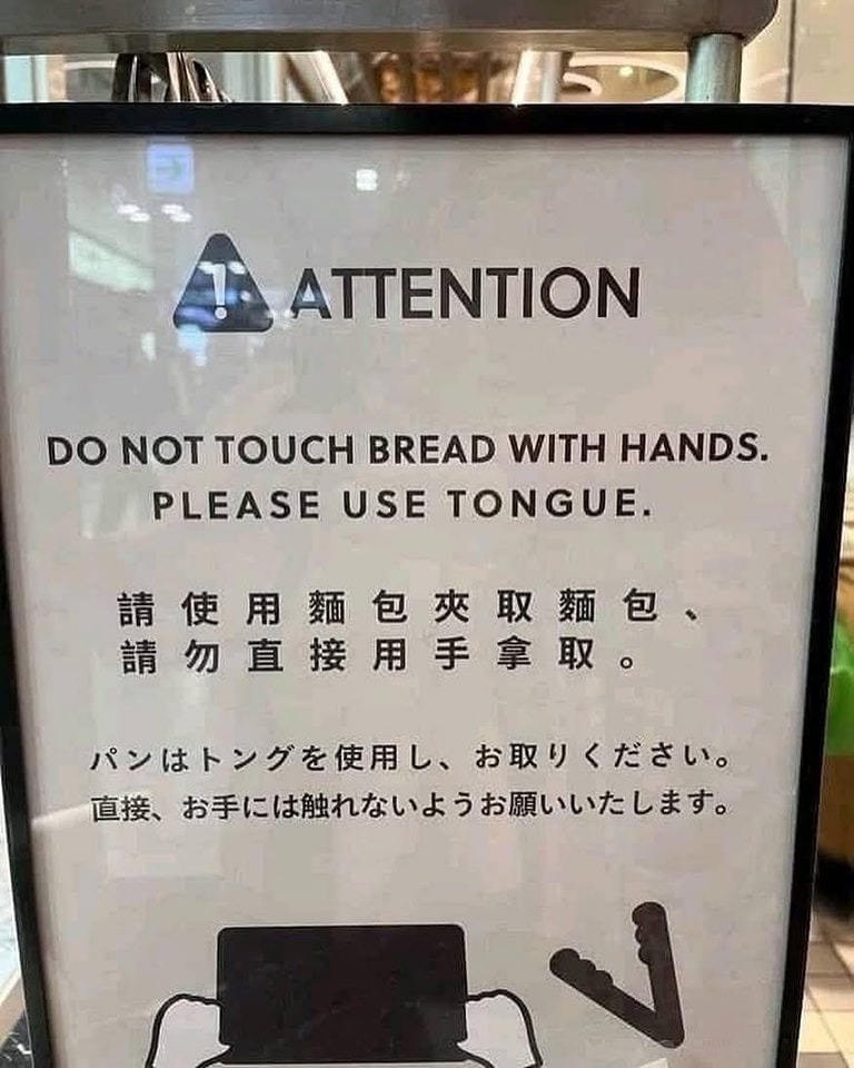 投稿日: 2025年4月20日外国人「日本にとんでもない英語の注意書きがあった…」 スレッド「一方その頃日本では😅」より。引用:Facebook(海外の反応)1万国アノニマスさん 一方その頃日本では😅誤:Tongue(舌)正:Tong(トング)英語部分:手でパンに触れないでください、舌を使うようにお願い致します2万国アノニマスさん舌を使うのは常識だぞ3万国アノニマスさん 口や歯や唇ではなく…具体的に舌だけなのか 続きを読む