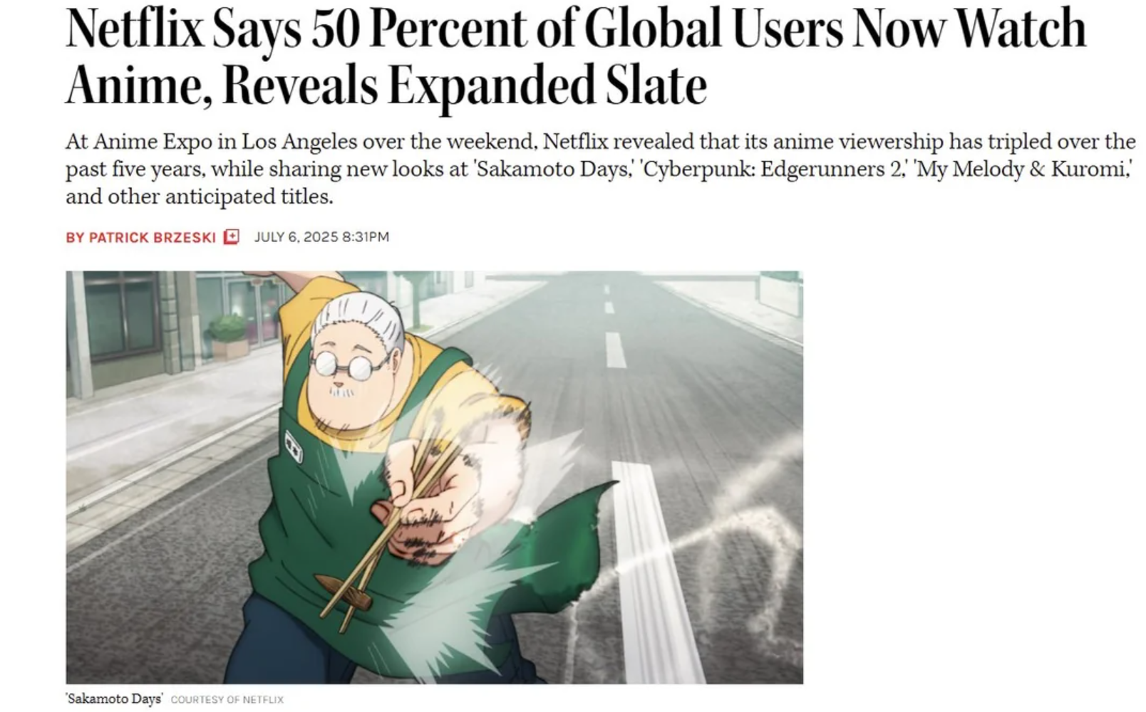 投稿日: 2025年7月7日Netflix「登録者の50%以上がアニメを見ていることが判明しました!」 海外の反応。 Netflixでアニメの人気が爆発か!? 海外の反応。 ネトフリ、アニメ作品が好調でアニメに力を入れていくことを決意か。 海外「確かにアニメは以前より益々人気になってる気がする。」 続きを読む