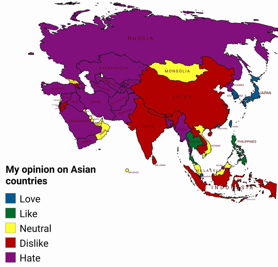 外国人「アジアで好きな国と嫌いな国を評価してみたがどう思う?」