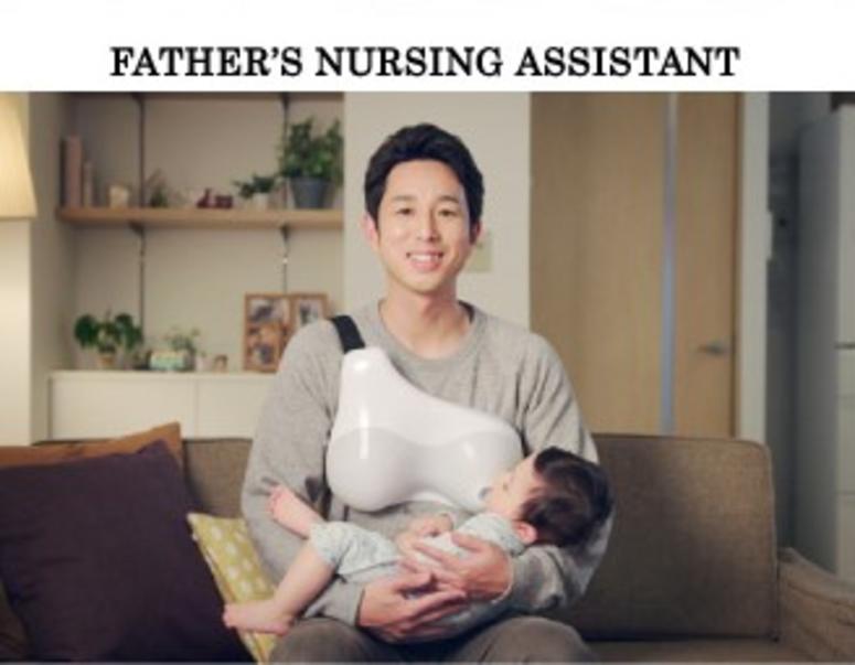 日本の赤ちゃんの睡眠時間は世界的に見ても短いと言われています。育児におけるストレス・悩みの多くは寝かしつけと食事に関することですが、一般的に父親の参加率はまだまだ低い状況にあります。また、添い乳は寝かしつけには効果的ですが、母親に寝かしつけが偏ってしまいがちになります。そこで、赤ちゃんを寝かしつける前に母親が行っている“授乳”に着目し、父親も授乳できるようになることで、母親の授乳以外の時間と赤ちゃんの睡眠時間を増やすことを目指しました。この2つを同時に実現するのがウェアラブルデバイス「FATHER’S NURSING ASSISTANT」です。小児科医やベビーシッターからのアドバイスを参考に、赤ちゃんが授乳時に手を胸に当てる習慣があることや、胸の柔らかさで安心感を持つという点に着目し、母親が授乳する状態に近いデザインにしました。これにより父親も両手で赤ちゃんを抱くことができ、スキンシップが取れ、母親と同じような寝かしつけができるようになります。プロダクトは片側がミルクタンク、もう片方が授乳できる仕組みになっています。以下略(DENTSU)